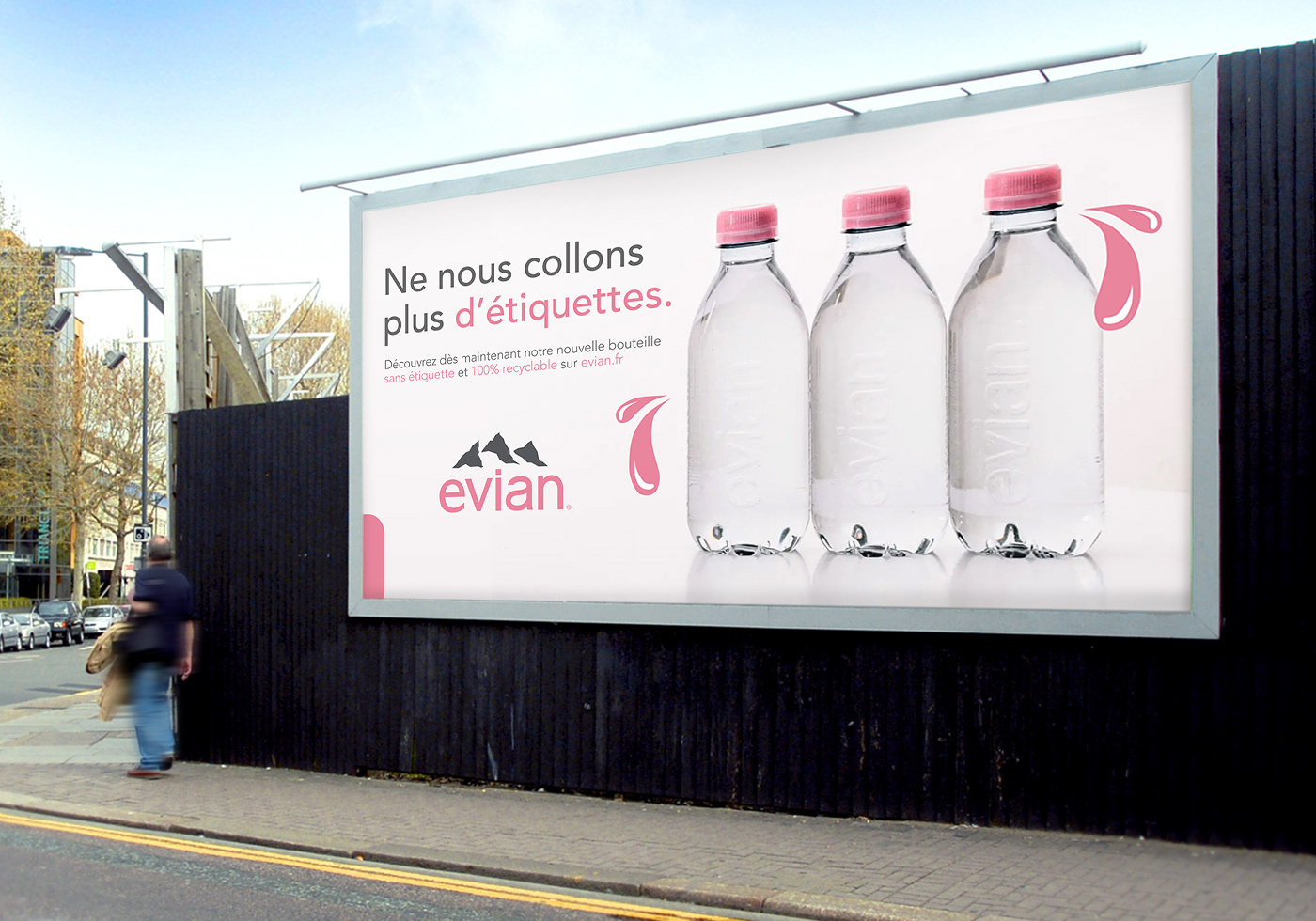 advertising campaign for the new Evian water bottles sold without labels.