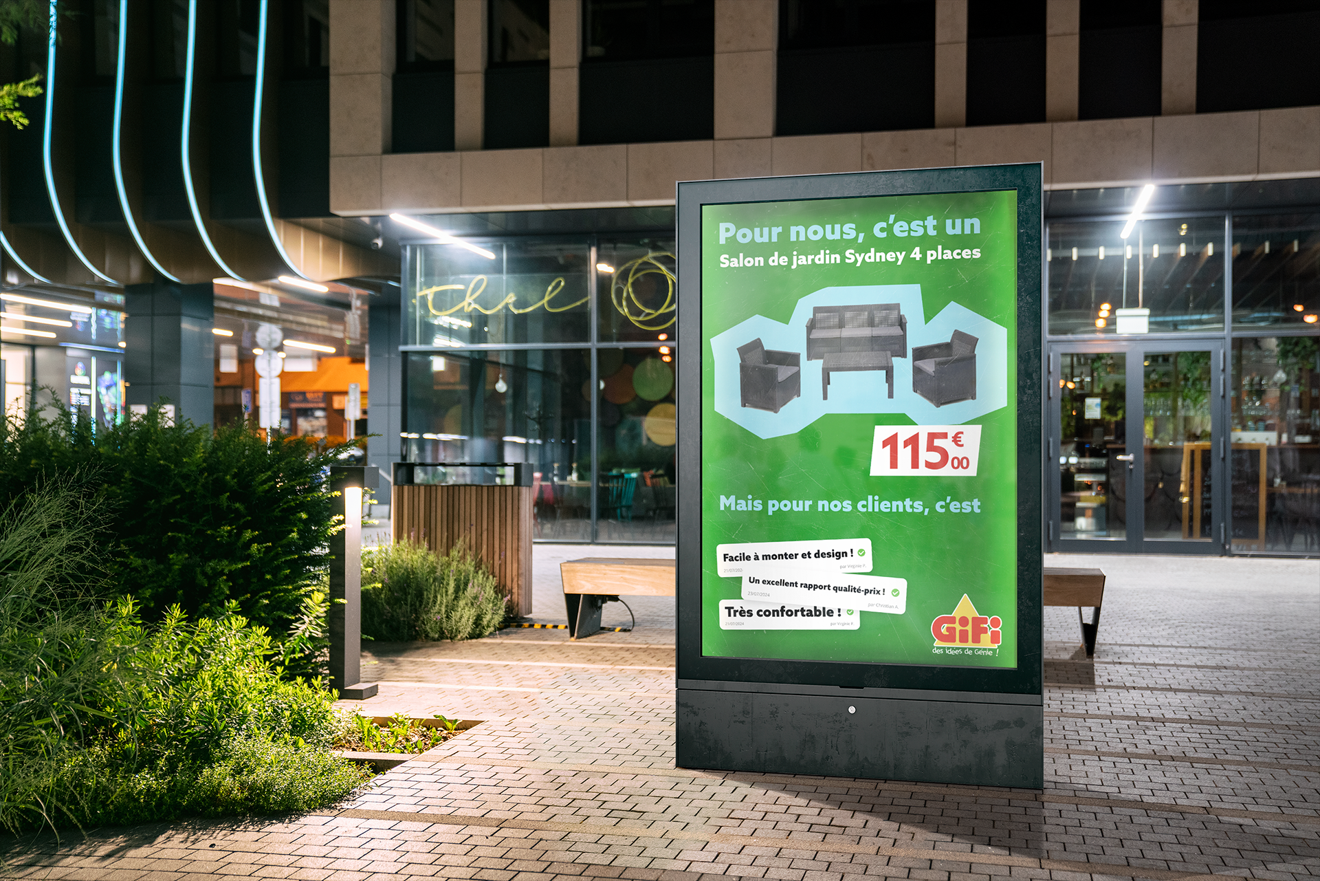 outdoor advertising campaign for gifi, a French discount retailer