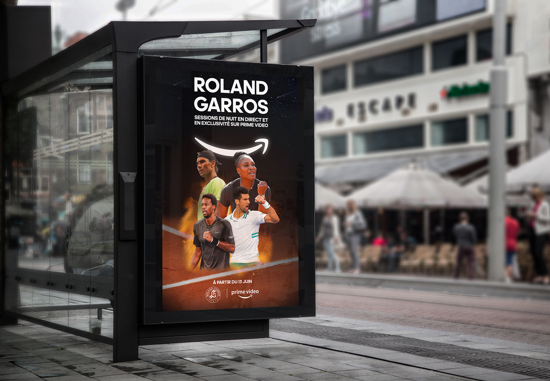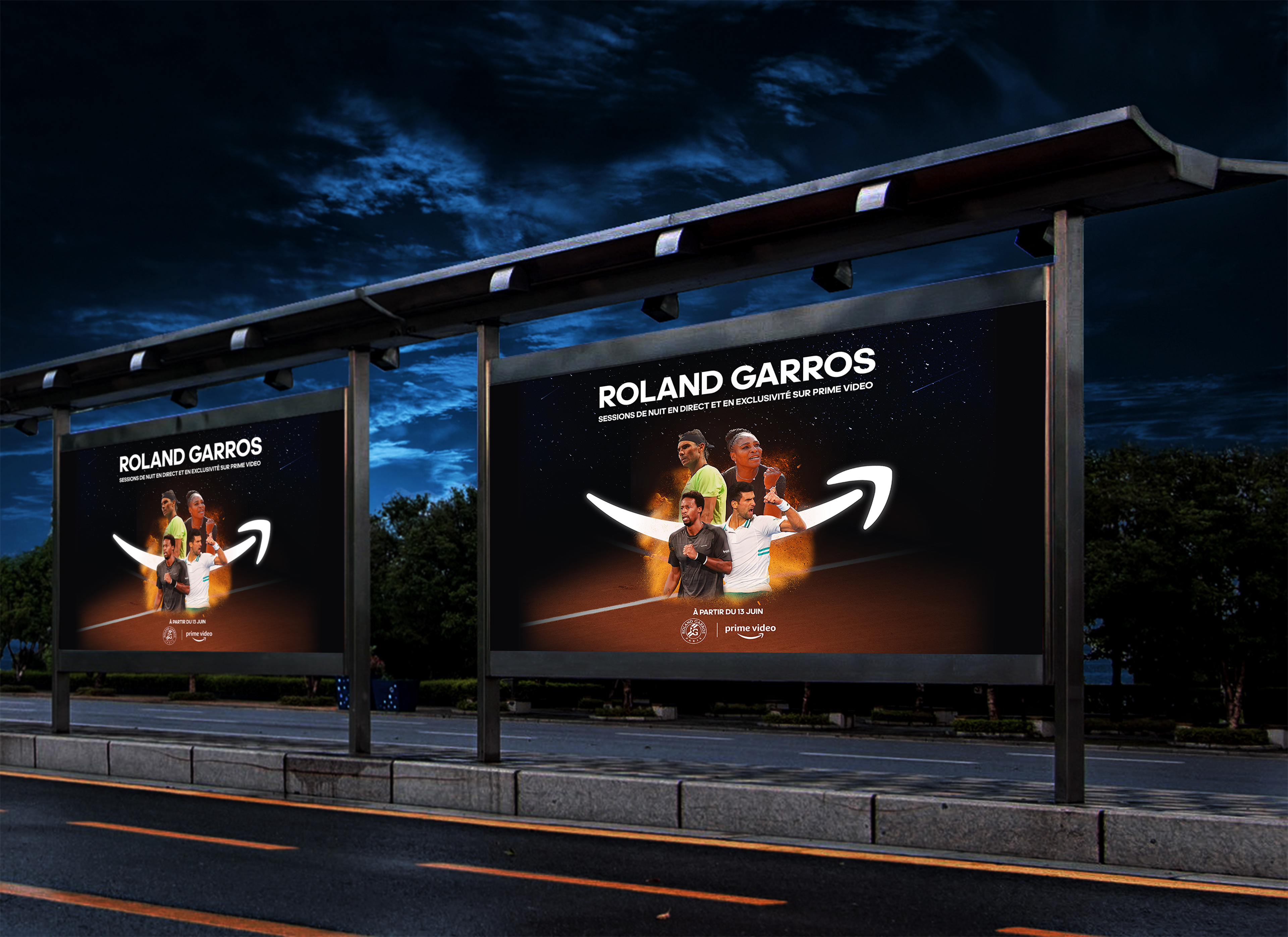 Advertising Posters for Roland-Garros 2022 night sessions on Prime Video.